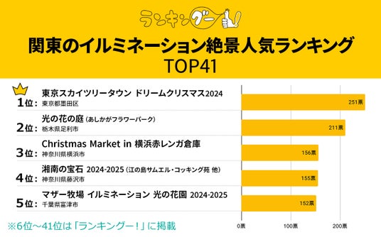 株式会社CMサイト(本社:大阪府大阪市、代表取締役社長:柴原 誠治)が企画編集する、「ちょっと気になる」を調べたランキングサイト『ランキングー!(https://rankingoo.net/)』は、『関東のイルミネーション絶景人気ランキングTOP41【2024-2025】』の結果を、投票者のコメント付きで紹介する記事として公開しました。