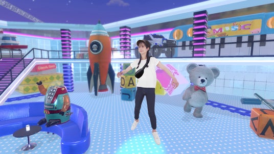 生成されたアバターは、バーチャルなUFOキャッチャーでおもちゃの世界に転送されます。クレーンで運ばれた後、カラフルでポップなおもちゃたちとのダンスパーティーで踊る自分自身のアバターを探してみましょう!