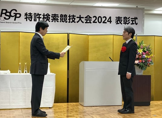 「特許検索競技大会」※3は、一般財団法人工業所有権協力センター(IPCC)が主催する、特許調査の実務能力を評価する日本で唯一の大会です。例年、特許事務所、特許調査会社、その他事業会社の知的財産部門の社員などが日本全国から参加しています。このたび「三分野ゴールド制覇賞」を受賞した鈴木 倫之は、当社入社以来、知的財産部門に所属し、直近5年間は特許クリアランス、IPランドスケープ※4、知財教育などを担当しています。鈴木は過去にも同大会への出場経験があり、「特許検索競技大会2013電気分野ゴールド」、「特許検索競技大会2019化学・医薬分野ゴールド」の認定を受けています。今回、「特許検索競技大会2024機械分野ゴールド」の認定を受けたことで、特許関連の調査会社・事務所などを除く事業会社所属として初となる「三分野ゴールド制覇賞」を受賞しました。