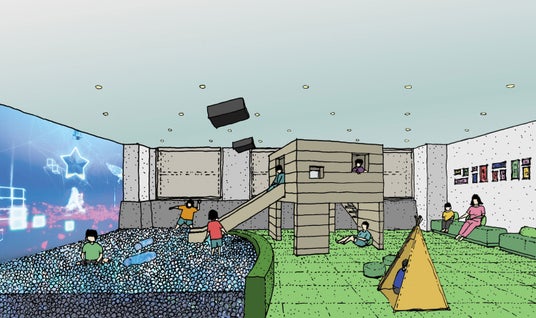 2つのキッズスペースが登場。本棚と遊具が一体になったライブラリースペースと、リトプラ(R)︎映像と連動したボールプールのあるアクティブに体を動かして遊べるスペースです。