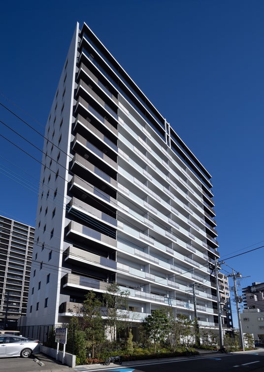 ジャズの街として知られる宇都宮と、未来にむけて発展する「宇都宮」駅東口エリアをイメージし「未来都市とジャズの景」をデザインコンセプトに設定しました。モノトーンカラーの外観はガラス手すりとルーバーをランダムに配置し、リズミカルで変化のある表情を演出しています。鬼怒通りから奥まったエントランスや折上天井と彩り豊かな植栽を眺めるラウンジなど寛ぎを深める上質の共用部をご用意しました。