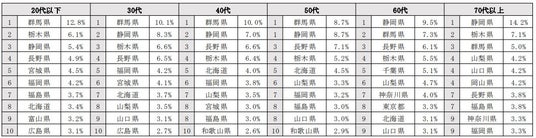 窓口相談では、初めて群馬県が1位となった。また、ランクアップしたのは、9位の福島県(前回12位)、13位の千葉県(前回15位)、16位の兵庫県(前回18位)。前回ランク外だった東京都が14位になった。
