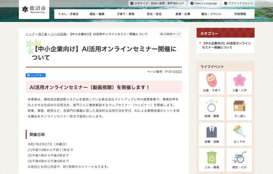 - セミナー名:AI活用オンラインセミナー(鹿沼市主催)