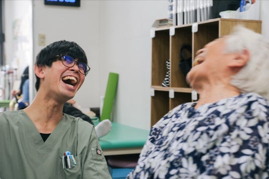 デイサービスの管理者と実際の利用者さんの交流場面。