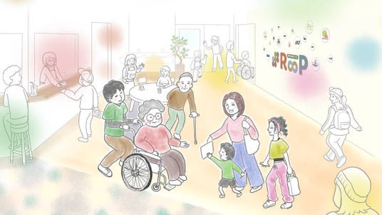 老後も”自分のやりたいことができて、会いたい人に会える”この当たり前をコロナ禍を経た今、改めて実現するべく、子供からお年寄りまで、すべての人が集うことができる施設を作りたいという願いを原動力に形にしたものが多世代交流拠点ROOPです。