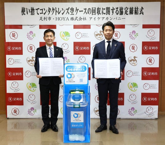 コンタクトレンズ専門店「アイシティ」を事業展開するHOYA株式会社 アイケアカンパニー(事業所在地:東京都中野区)は、2025年3月11日(火)に、栃木県足利市との『使い捨てコンタクトレンズ空ケースの回収に関する協定』を締結いたしました。