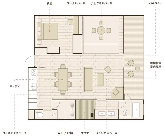 客室面積: 屋内47.17平方メートル + バルコニー 5.67平方メートル