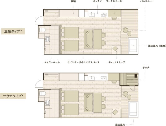 どちらのタイプもキッチン・ワークスペース完備で、休暇にもワーケーションにも最適。「もう一つの家」として、日常に溶け込みながら、快適に過ごせる空間を提供します。