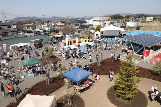 ふじおか幼稚園を会場に特設ステージや飲食、キッチンカー、ワークショップの店舗が集結
