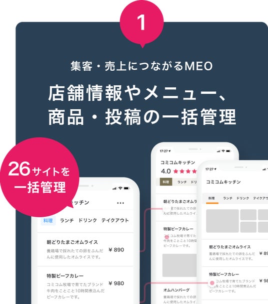 店舗情報・メニューや商品・投稿を一括管理