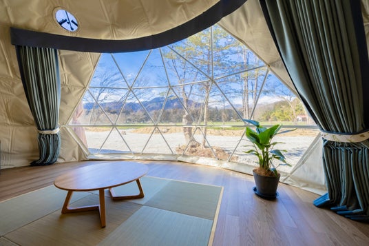 NAGOMI CAMPでは、那須の森林に囲まれた中にこれまでにはない「日本の和」を体験できるドームテントを1日4組限定でご用意しました。