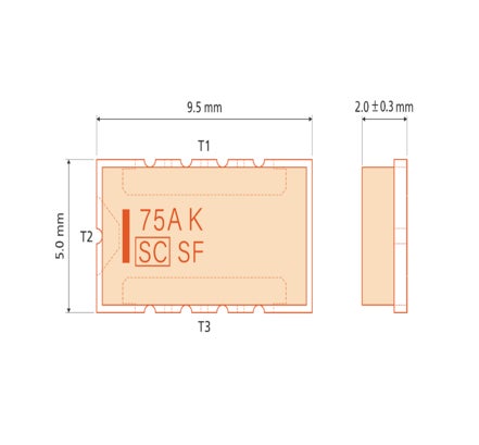 かねてより、これらのお客さまから最終製品の性能向上に必要となる大電流対応可能なSCP製品の要望を多くいただいており、開発を進めてきました。「SFK 75Aシリーズ」は、当社独自のヒューズエレメントの低抵抗化技術をより最適化することで、従来の60A定格のSCPと同サイズを維持しながらも、高容量・高出力で大きな電流を必要とするアプリケーションに幅広くご使用いただけます。製品サイズが横幅9.5 mm、縦幅5.0mm、厚み2.0mmと小型であることから、最終製品の内部の省スペース化にも貢献します。