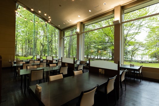 レストランの大きな窓からも新緑が楽しめます