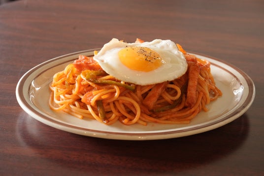 極太麺に特製ケチャップソースを絡め、半熟目玉焼きをトッピングした贅沢ナポリタン。