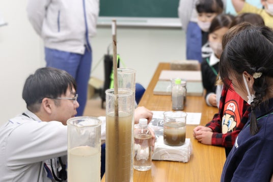 VR体験の他にも、当社社員が企画協力した「顕微鏡を使った微生物観察」「水質実験」「施設(管制室)見学」など、下水道施設の大切さを知ることができる実験やイベントを体験してもらいました。参加した子供たちは真剣に説明を聞きながら熱心にメモを取っていました。「施設に入った水は何時間できれいになるの?」「1つのエアレーションタンクに微生物は何匹いるの?」「最終沈殿池からどうやって川や海に水を流すの?」など積極的に質問していただき、満足いただけた様子でした。