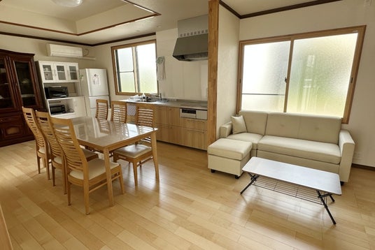 古民家をリノベーションし、シェアハウスとして2025 年度新入社員が2 名入居いたしました。リビングには、大きなテーブルを設置し、入居者以外の同期も気軽に集まれる交流の場を提供しています。来年度以降の新入社員も入居可能で、今後は同期だけではなく、会社の仲間との交流の場につながっ