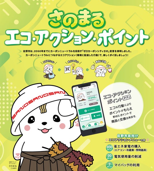 栃木県佐野市では、2050年までに二酸化炭素排出量実質ゼロを目指す「ゼロカーボンシティさの」の実現に向けた新たな施策として、令和7年7月1日より「さのまるエコ・アクション・ポイント」制度を開始します。本制度は、環境省が推進する「エコ・アクション・ポイント(EAP)」の仕組みを活用し、市民のエコな取り組みに対してポイントを付与するものです。獲得したポイントはサービスや商品への交換などに利用でき、脱炭素につながる行動の“見える化”を実現し、日常生活の中で持続可能な行動を促進します。