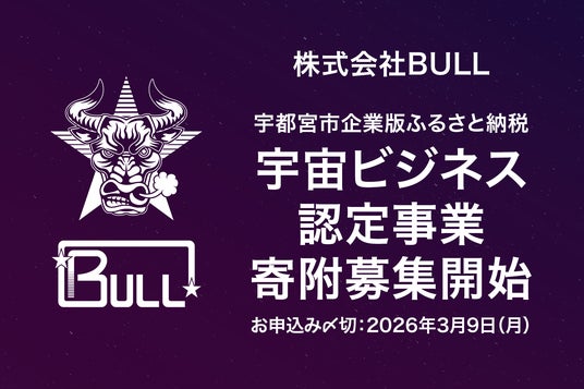 株式会社BULL(栃木県宇都宮市、代表取締役/CEO:宇藤恭士(うとうやすひと)、以下BULL)は、宇都宮市が宇宙関連産業振興施策として取り組む、2025年度(令和7年度)の企業版ふるさと納税を活用した「宇宙ビジネス認定事業補助金(以下「補助金」)」の「認定番号 R7-1」に認定されましたことをご報告いたします。
