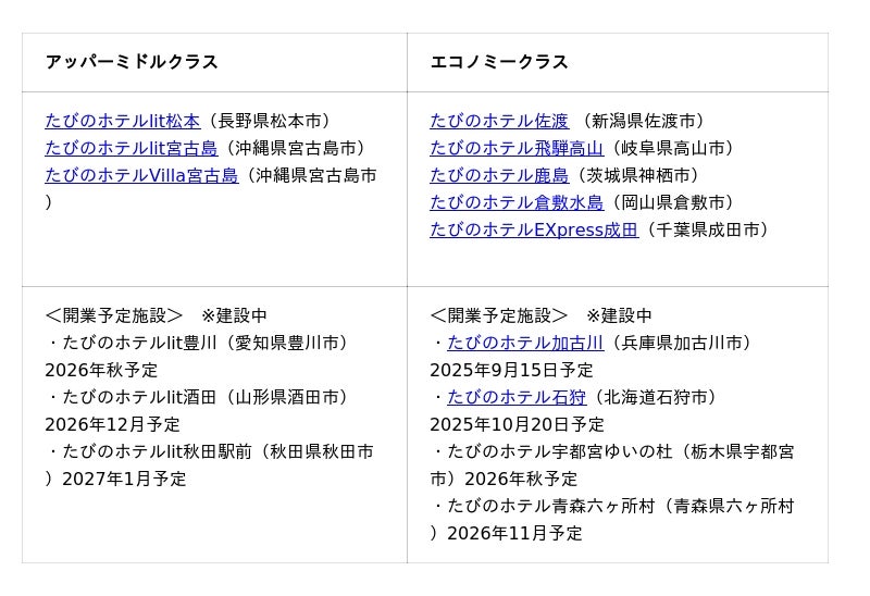 「たびのホテル」ブランドシリーズ (2025年7月10日現在)