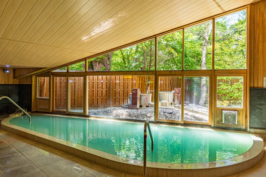 名所「いろは坂」を上り、中禅寺湖や戦場ヶ原を過ぎると、標高約1,500メートルの湯ノ湖のほとりに休暇村日光湯元が建ちます。シラカバやカラマツの木々に彩られたホテルは、建築家“清家清”氏のデザインで、周辺の自然に溶け込む佇まいは四季の移ろいが感じられ、戦場ヶ原ハイキングや日光東照宮など世界遺産めぐりの拠点にも便利。日本で4番目に濃い硫黄泉と言われる「日光湯元温泉」から引いた源泉かけ流しの温泉が楽しめます。