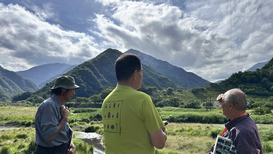 3日目に行うフィールドワーク開催地である足尾銅山にて、「足尾に緑を育てる会」の方から植樹などの自然再生活動の進捗状況をお聞きする。(2025年7月、日光市)