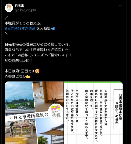 ◆ 日光市公式Xで取材の裏側や「隠れすぎ遺産」の最新情報を発信中:日光市公式Xでは、紙面で紹介しきれない取材の裏側や隠れすぎ遺産の最新情報、他にも日光市の魅力について発信しています。
