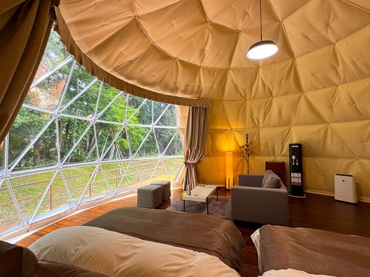 開業からわずか2年で、じゃらんアワード2024「泊まって良かった宿大賞 栃木県」を2年連続で受賞。広々としたドームテント、地元食材を活かした食事、そして“スタッフのホスピタリティと心地よい距離感”が、SNSや旅行予約サイトなどでも高く評価されています。