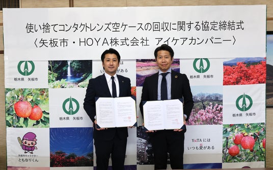 コンタクトレンズ専門店「アイシティ」を事業展開するHOYA株式会社 アイケアカンパニー(事業所在地:東京都中野区)は、2025年7月28日(月)に、栃木県矢板市との『使い捨てコンタクトレンズ空ケースの回収に関する協定』を締結いたしました。
