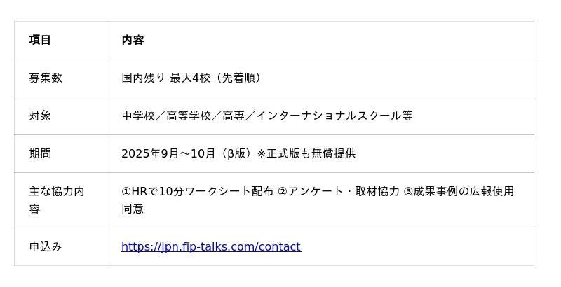 「今回の提携を通じて、本校の英語の授業やグローバル・ラーニングコースの活動において『FIP Talks』を活用し、英語による思考力や表現力を高める取り組みを進めてまいります。
