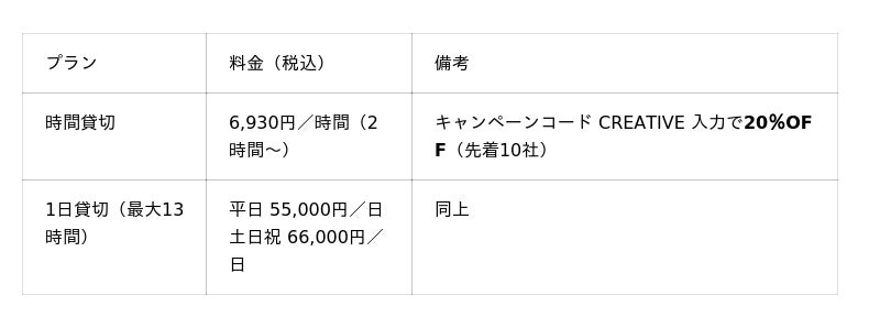 クリエイティブなプロジェクトを加速させたい企業・団体向けの完全予約制貸切空間 です。