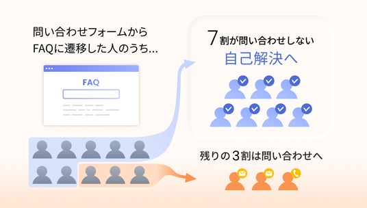 問い合わせフォームからFAQに遷移した人のうち7割が問い合わせしない自己解決へ 残りの3割は問い合わせへ