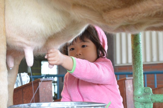 牛さん元気!乳しぼり体験無料(冷たい乳製品のドリンク付き)