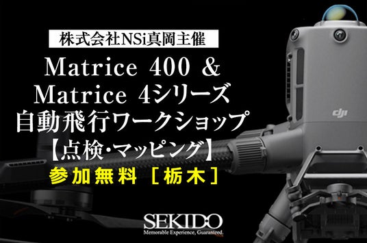 DJI(ディージェイアイ)正規販売代理店としてドローンビジネスの最先端を支える株式会社セキド(本社:東京都港区、代表取締役:大下貴之)は、株式会社NSi真岡(本社:栃木県芳賀郡、代表:水沼和幸、以下「NSi真岡」)と共同で、2025年9月30日(火)・10月10日(金)・10月15日(水)に栃木県茂木町にて、最新産業用ドローンの自動飛行機能を体験できる「Matrice 400 & Matrice4シリーズ 自動飛行ワークショップ」を開催いたします。各回先着15名(事前申込制)につき、満席になり次第、受付を終了いたします。