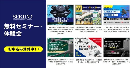 セキドでは、より多くの事業者の方にドローンを使った業務効率の改善を実現していただくため、業務用ドローンや関連ソリューションをご紹介する無料セミナーやイベントを定期的に開催しております。今後もオンラインや全国各地での開催を予定しておりますので、ご興味をお持ちのイベントにはぜひお気軽にご参加ください。