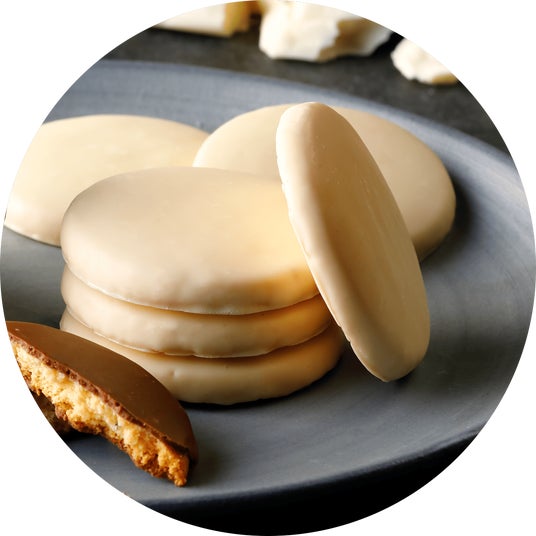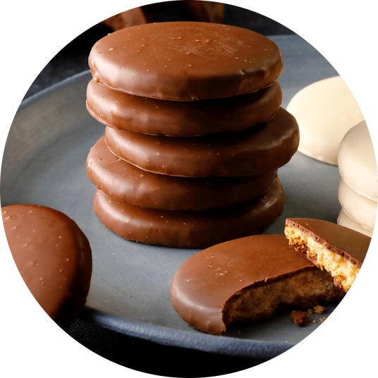 パルメザン、エダムの2種のチーズなどをブレンドして焼き上げた『御用邸チーズクッキー』に、口どけの良いホワイトチョコレートをコーティングした「ホワイトショコラチーズクッキー」と、ミルクチョコレートをコーティングした「ミルクショコラチーズクッキー」の2種類をアソートでご用意しました。チーズの程よいコクと塩味、チョコレートの甘さがそれぞれを引き立てあう、風味豊かなショコラチーズクッキーです。
