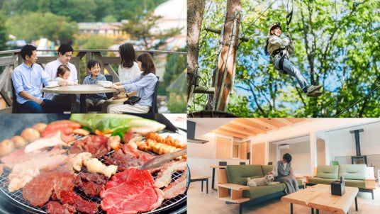 宿泊は温泉付きのコテージ、透明グランピング「AURA」や、築浅の貸別荘をご用意。広々としたプライベート空間で、家族や友人と共にくつろぎながら、自然と一体になった贅沢な時間をお過ごしください。