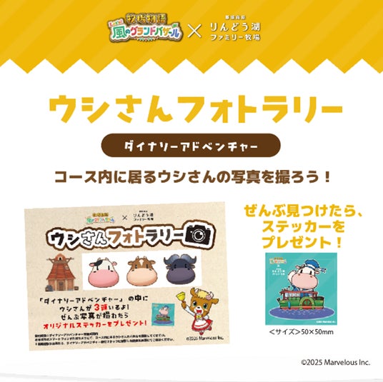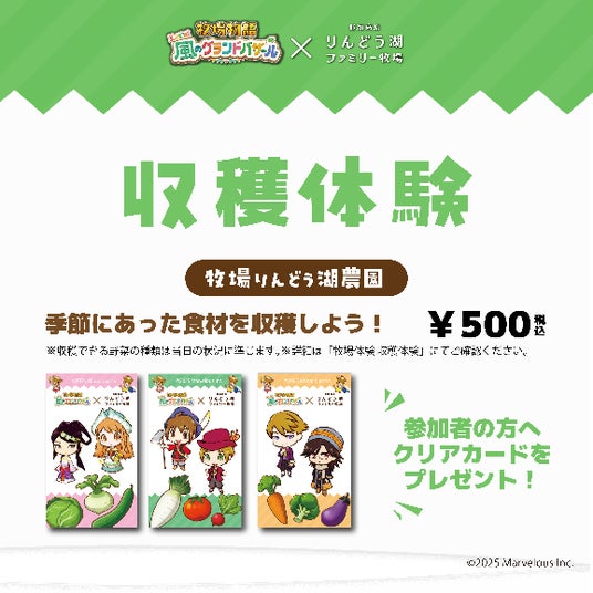那須興業株式会社(栃木県那須町/代表取締役社長:林 沙紀)が運営する「那須高原りんどう湖ファミリー牧場」(以下、「りんどう湖ファミリー牧場」という)は、「牧場物語」シリーズ最新作『牧場物語 Let’s!風のグランドバザール』とのコラボ企画開催期間を2026年1月12日(月祝)まで延長します。また、2025年10月25日(土)・10月26日(日)にはりんどう湖ファミリー牧場イベントステージにて「コラボ記念トークイベント」を開催いたします。