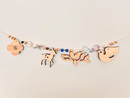 とちぎ県産スギのパーツを使って、ガーランドを手づくり!子どもから大人まで楽しめるワークショップです。木のパーツを自由に組み合わせて、世界にひとつだけの作品をつくりませんか?飾れば、おうちに森のやさしさが広がります。