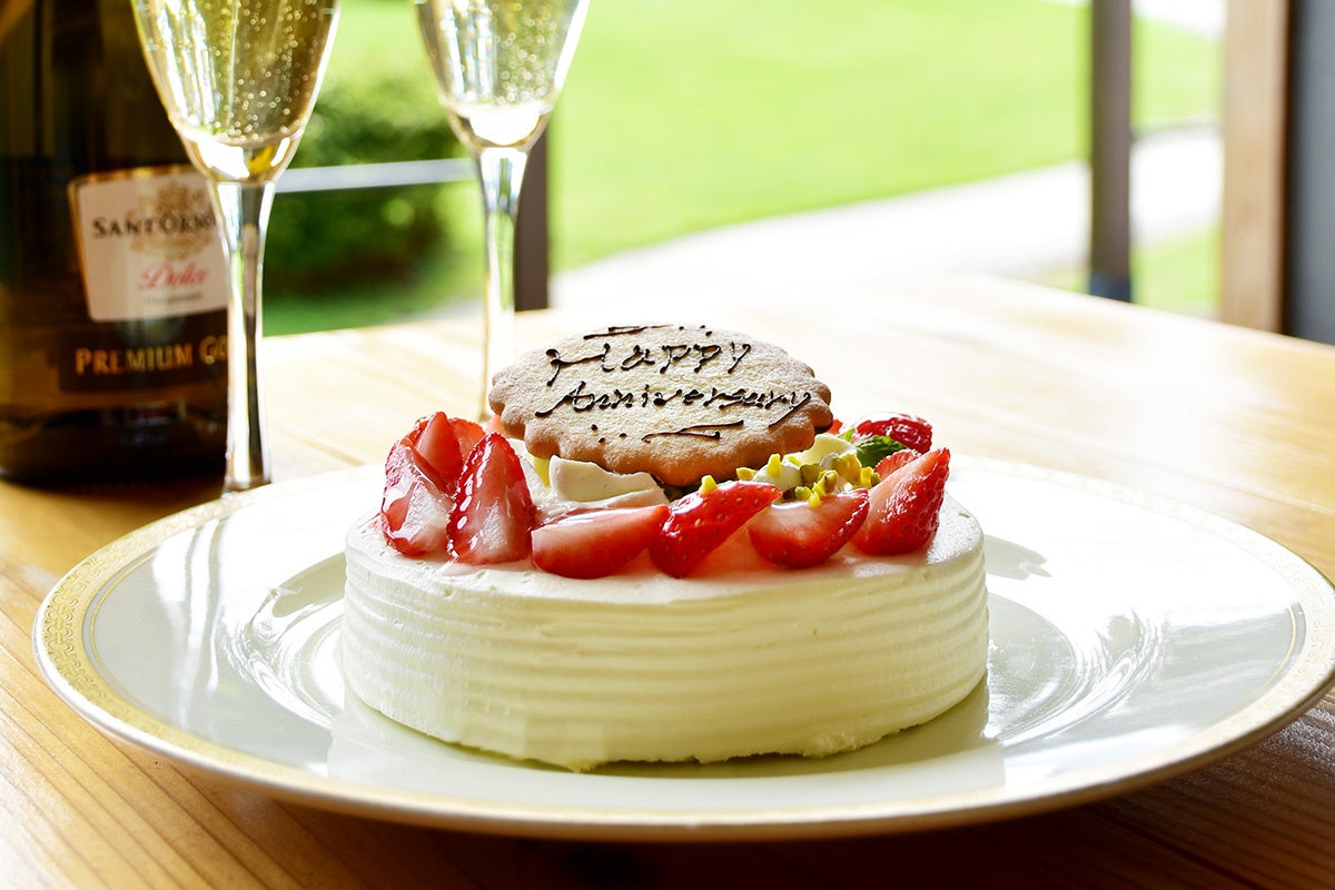 ケーキの種類、メッセージプレート内容(20文字程度)、ご提供のタイミング等をお選びいただきます