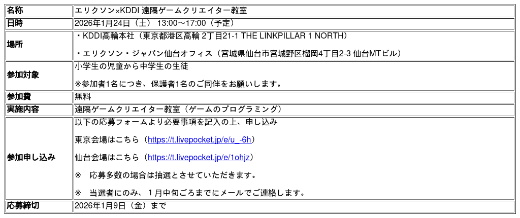 次回は、2026年1月24日に第二弾の遠隔ゲームクリエイター教室を実施します。