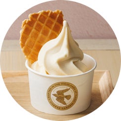 クッキーのようなソフトで軽い食感のワッフルチップを添えた、ベイクドチーズケーキ風味のソフトクリームです。
