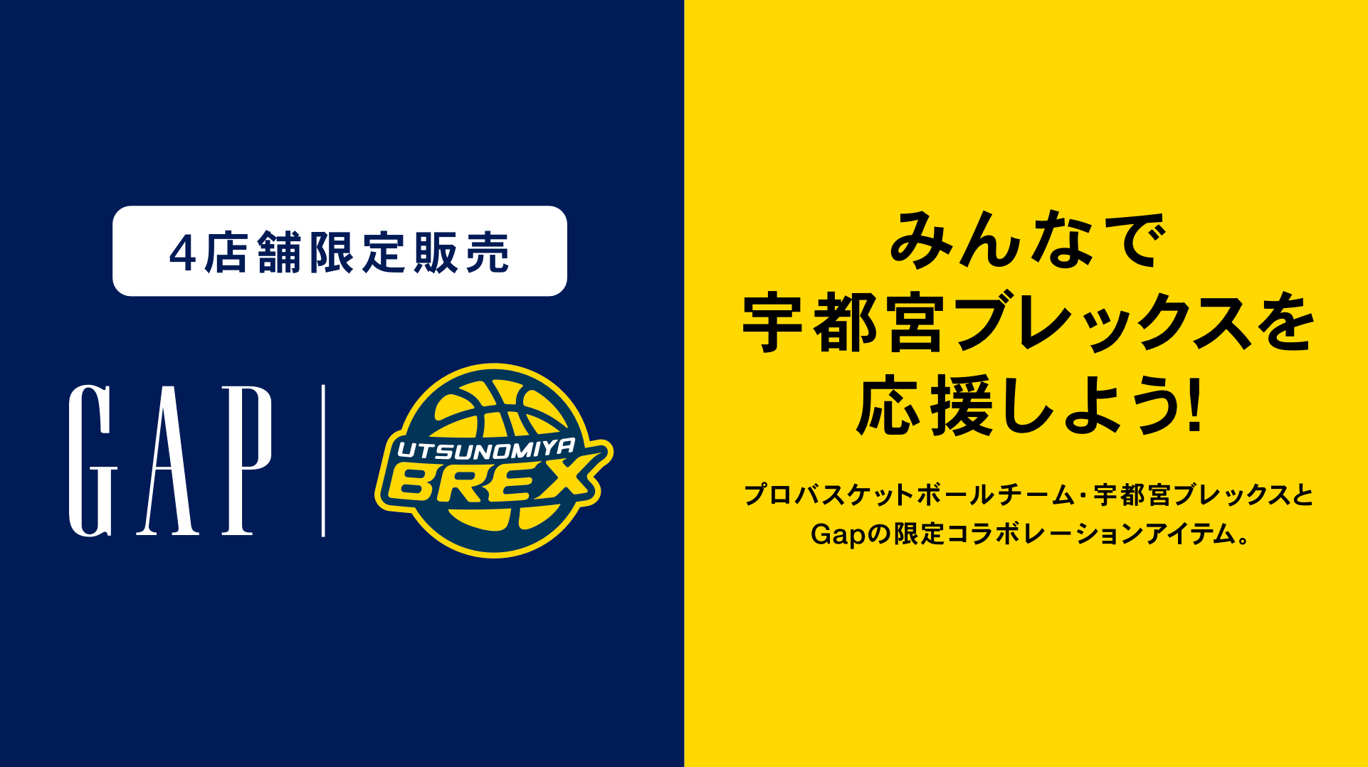 10月31日(金)より、Gapとブレックスのコラボ商品が、栃木県内の4店舗のGapで販売されます。