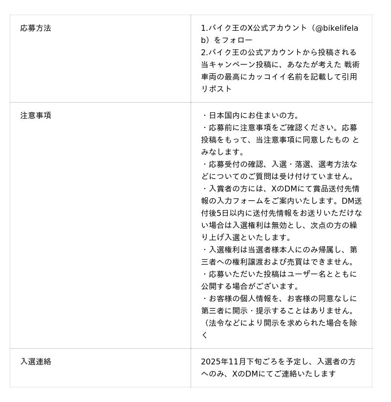この度の同盟を記念し、戦術車両の名称を公募するキャンペーンを実施いたします。