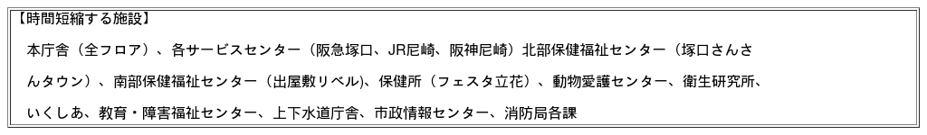 ※なお、時間変更対象の施設は以下のとおりです。