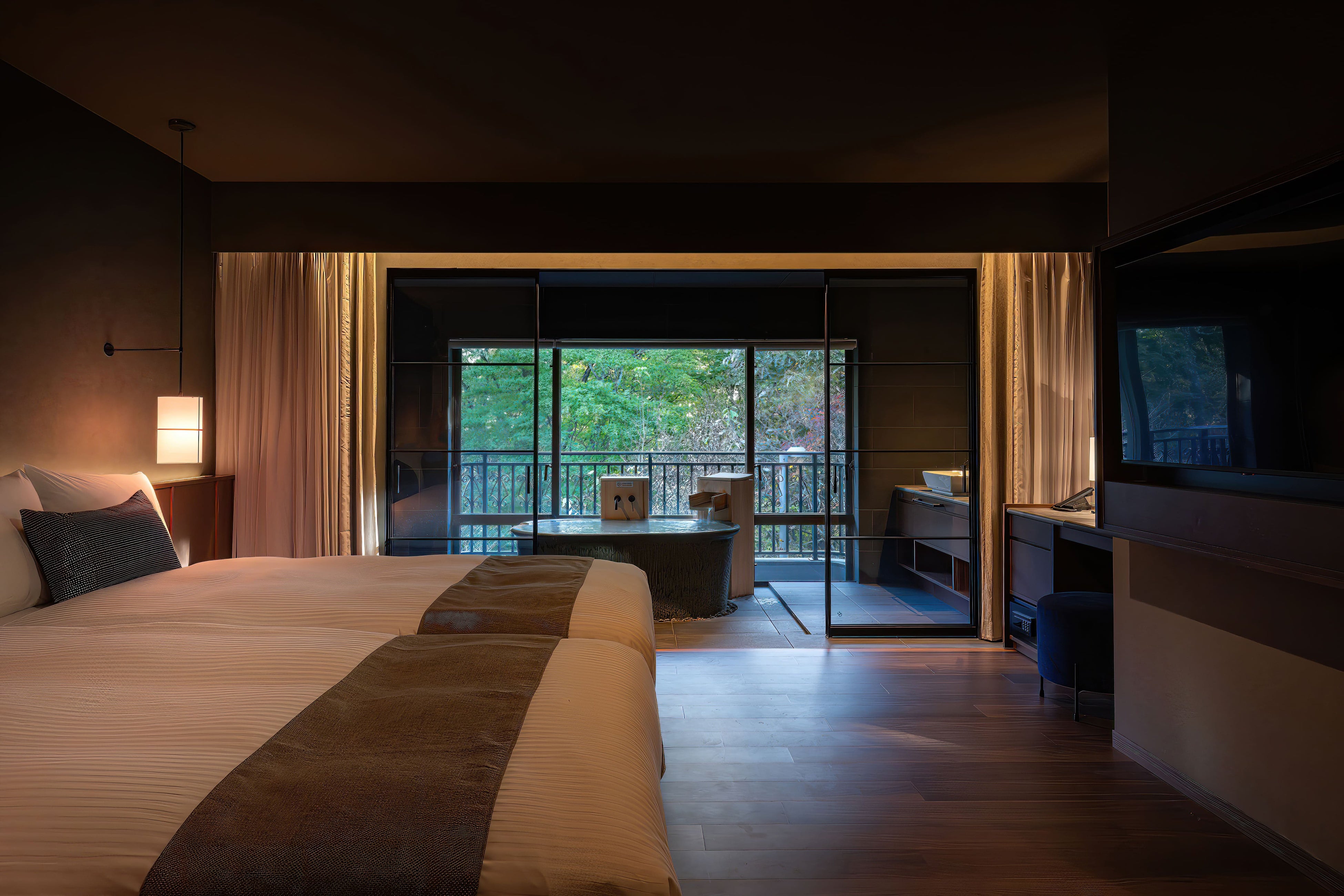 この度、オープンからわずか1年でミシュランガイド ホテルセレクション2025に掲載いただきました。すべての客室に源泉かけ流しの半露天風呂を備え、にごり湯の硫黄泉は疲労回復や神経痛の改善に効果が期待されます。自然を望む大浴場や、一部客室にはプライベートサウナも完備しております。