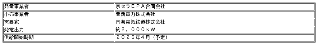 京セラEPA、南海電鉄、関西電力とのオフサイト型コーポレートPPAに合意