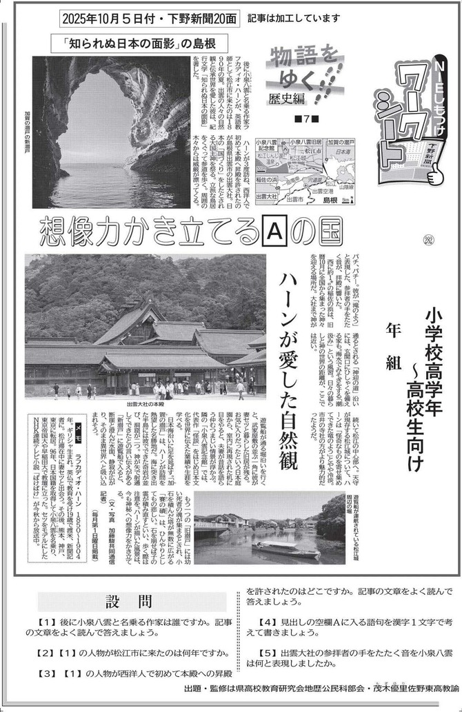 下野新聞の記事を使って社会への関心や読解力を高める「ワークシート」をスタートします。出題するのは、県小・中・高校教育研究会の国語・社会部会に所属する教員たち。ぜひ挑戦してください。