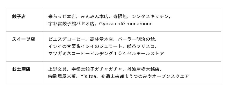 あなたに合った宇都宮の『餃子店』『スイーツ』『お土産』『市内観光スポット』を巡りながら,自分だけの🥟“餃子旅”🥟をお楽しみください!
