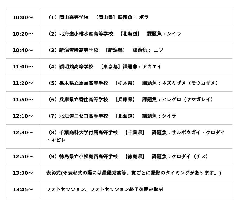 (高校生によるプレゼンテーション 10:00~13:10頃、表彰式:13:30~14:00頃)