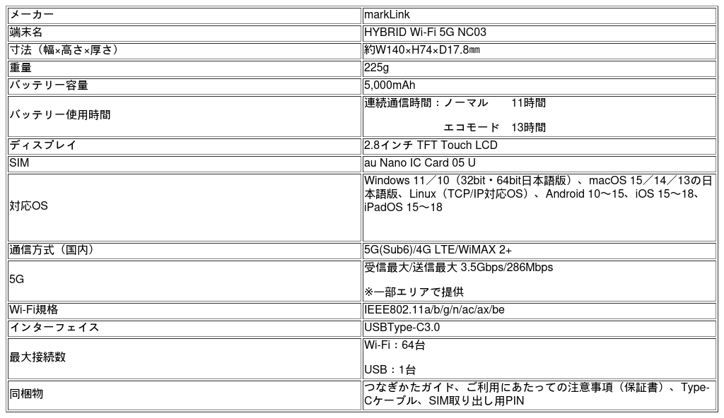株式会社ALL CONNECT(代表取締役社長:岩井 宏太、本社:福井県福井市)のグループ会社、株式会社Link Life(代表取締役:織田 晃宏、本社:東京都品川区)は、Broad WiMAX(https://wimax-broad.jp/lp/5g-v2)において、新端末「HYBRID Wi-Fi 5G NC03」(メーカー:markLink)の提供を開始しました。